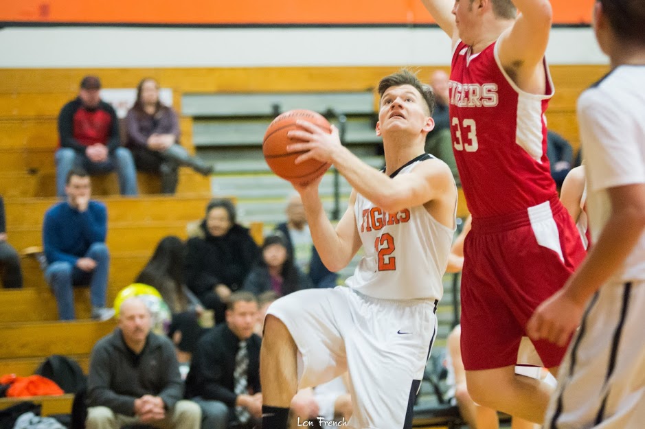 “Willamina took an early 10-8 lead in the first quarter as the Tigers adjusted to their smaller lineup, including ironman Clay Nelson in the post against the much larger Bulldogs. Nelson, missing only one day this year due to procedures involved with his future military position, has been willing to participate in whatever capacity he is needed. While Nelson doesn’t normally make a splash in the stat columns, his dedication to the concept of ‘team’ has earned him the permanent roll of captain on this squad.