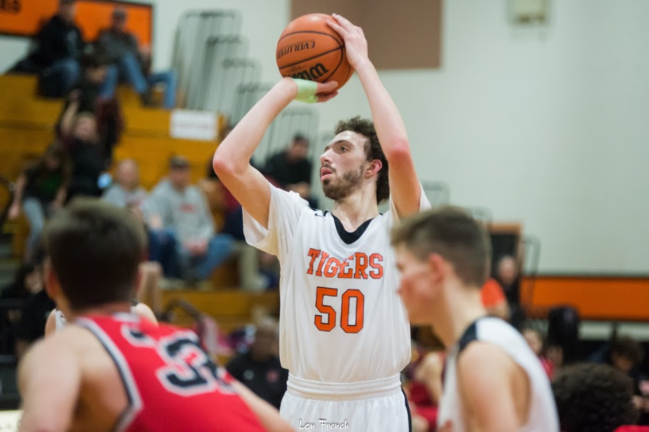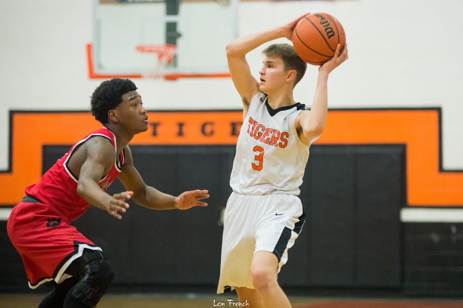 “As the second period began, the Tigers continued with their game plan of man defense, and advancing the ball in transition quickly through the middle. Hall made his second deep-ball during the second, and added a couple of critical free throws. The team recognized the foul situation, and penetrated the middle, finding their way to the free throw line. The awaited return of DeMello, who hadn’t seen a minute of league play due to an injury sustained in preseason — was welcomed as he scored a 3-pointer, a layup, and went 3-for-4 from the charity stripe. Francisco Ramos scored five in the frame, and a pair of free throws by both Lucas Hindman and William Brooks had four players in the scorebook who didn’t play in the first meeting between the teams.